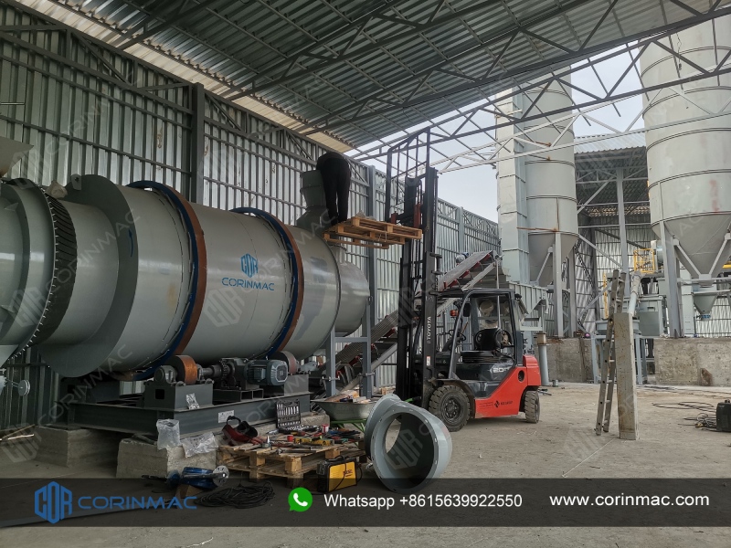 De kearndroegerapparatuer brûkt in grutte trommeldroeger, dy't it fochtgehalte fan grûnstoffen fluch kontrolearje kin, wêrtroch't de mortelkwaliteit fan 'e boarne ferbettere wurdt. Tidens it ynstallaasjeproses fan 'e apparatuer hat it technyske team it systeem sekuer kalibrearre om stabile operaasje ûnder hege lesten te garandearjen.